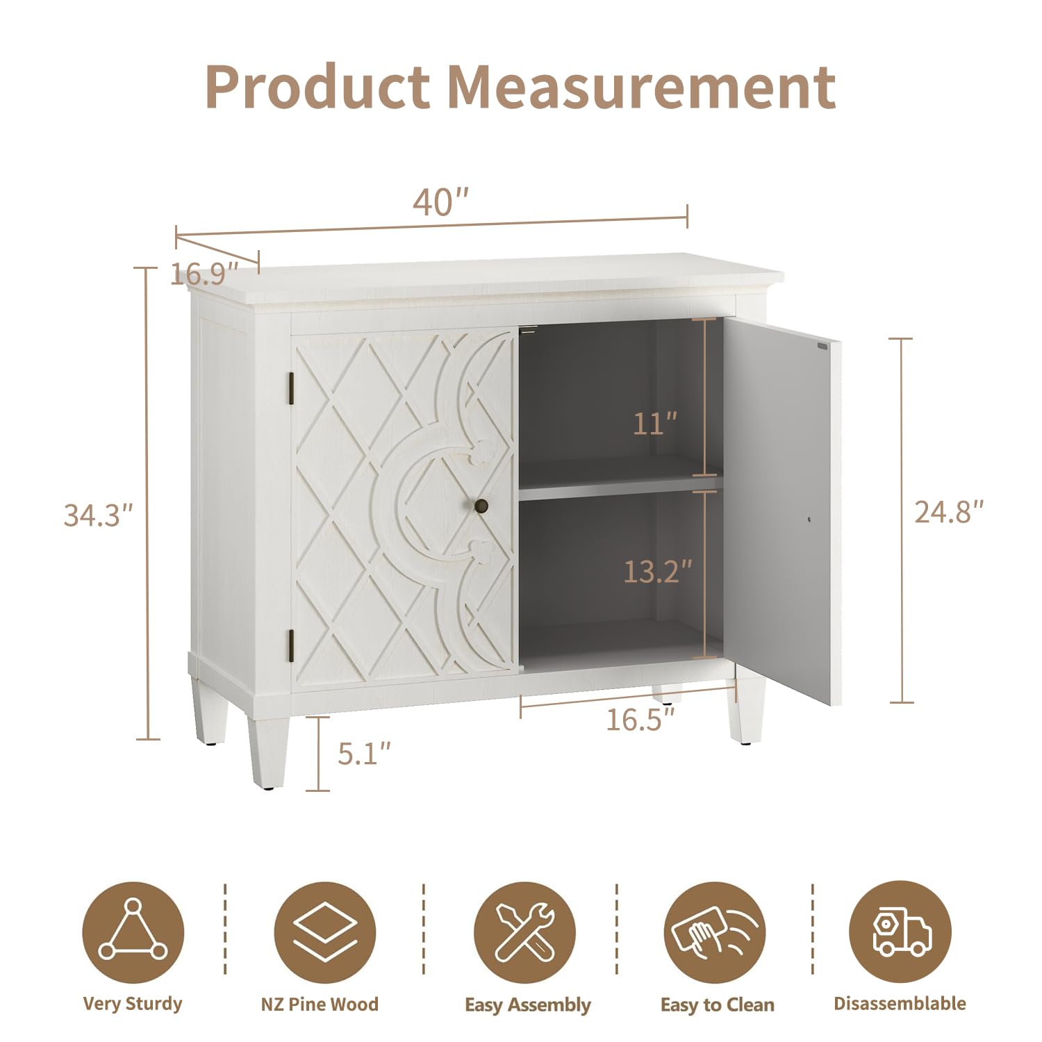 - Robust Construction for Enduring Quality: The kitchen accent cabinet legs and frame are premium NZ pine wood, this craft living room cabinet with unique wood carving craftsmanship combines style with durability. Its easy-to-clean surface keeps maintenance simple