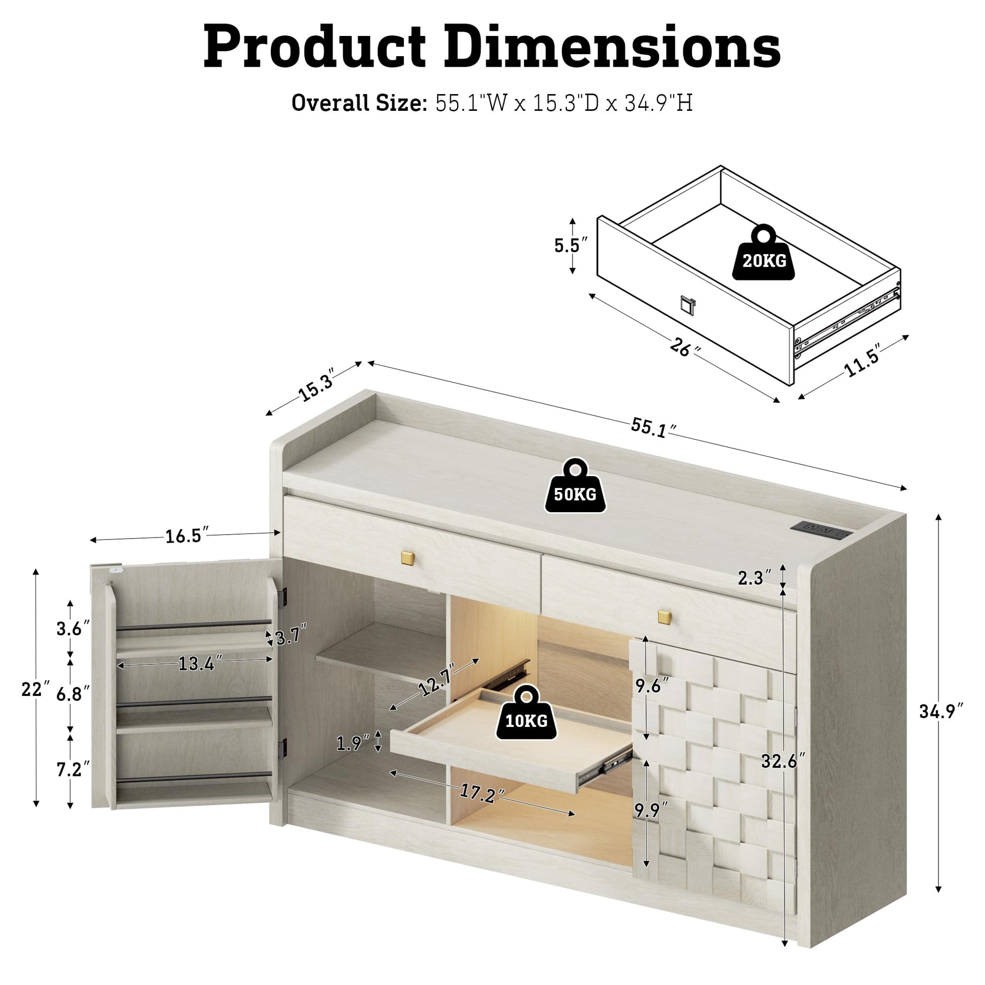 • Durable & Easy to Maintain: Crafted with high-quality MDF, this sideboard buffet cabinet with storage is designed for long-lasting durability. The easy-to-clean surface and sturdy construction ensure that it will remain a reliable and stylish addition to your home for years to come.