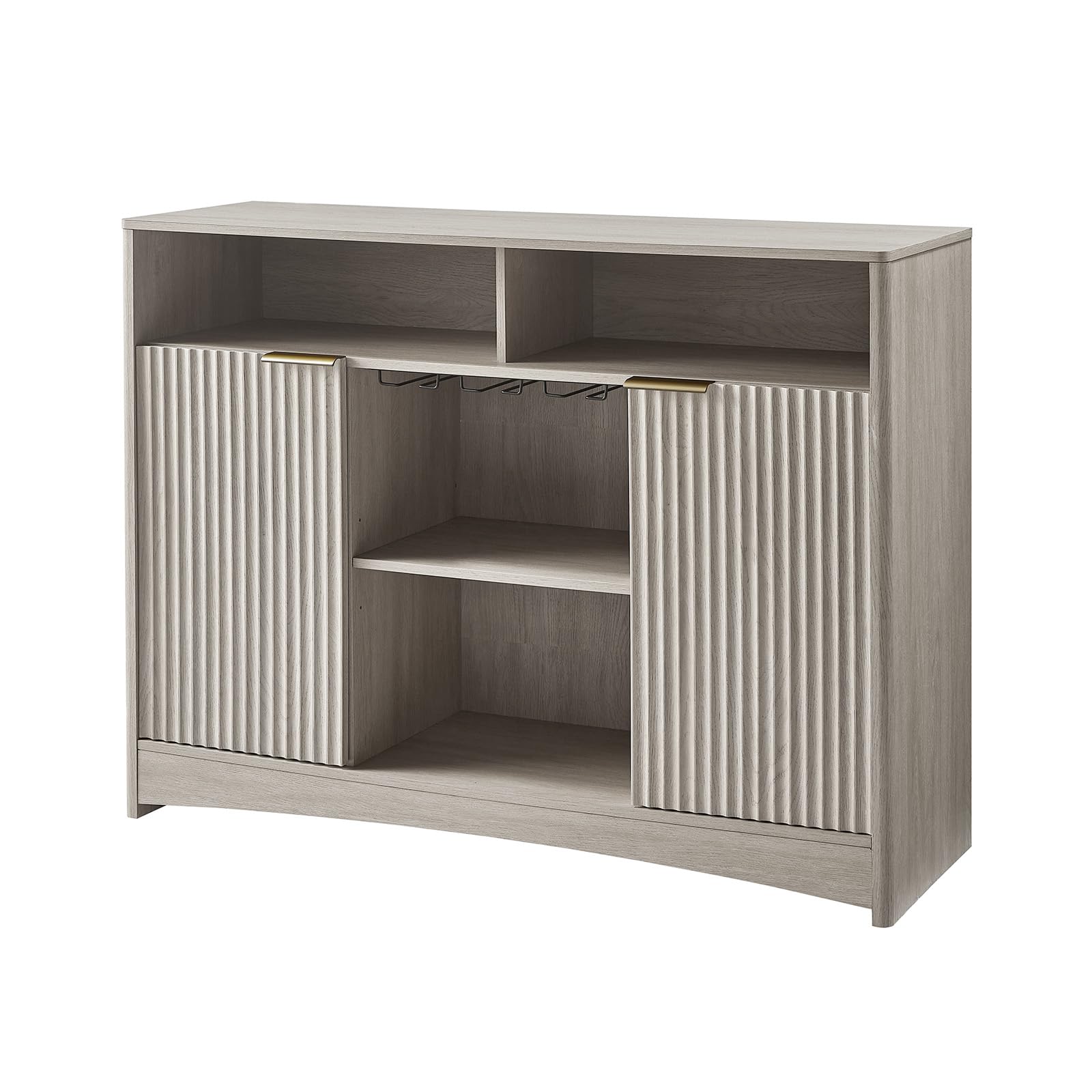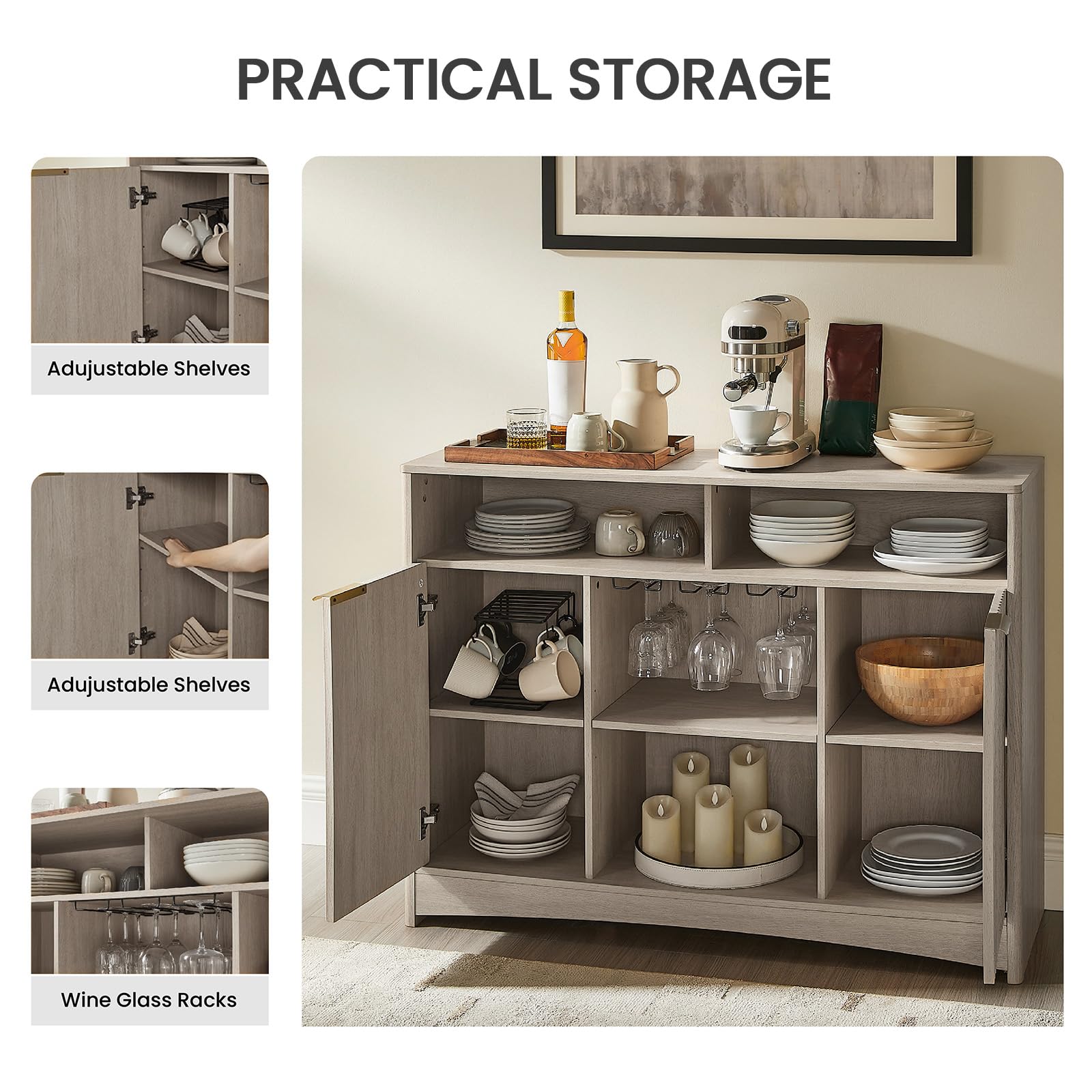 Coffee Bar Cabinet with Wine Glass Rack, 47" Buffet Sideboard with Adjustable Shelves and Soft-Close Hinges, Holds 200 lbs, Grey