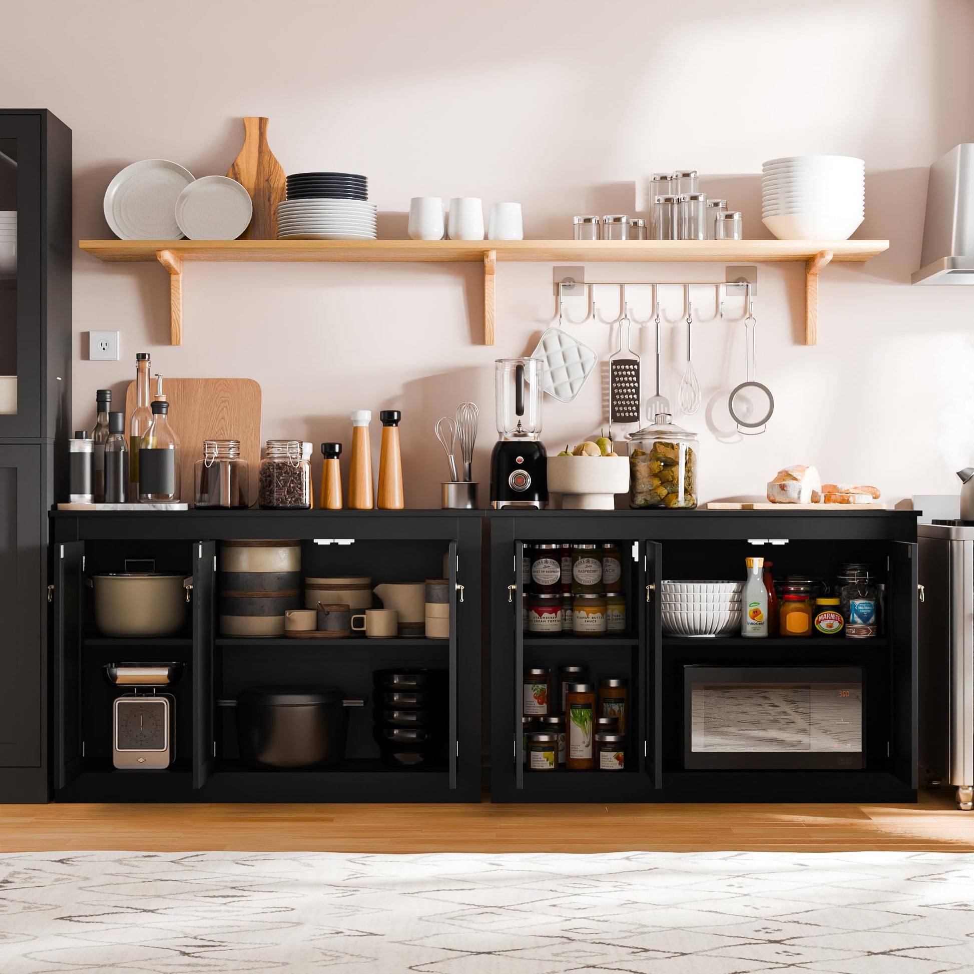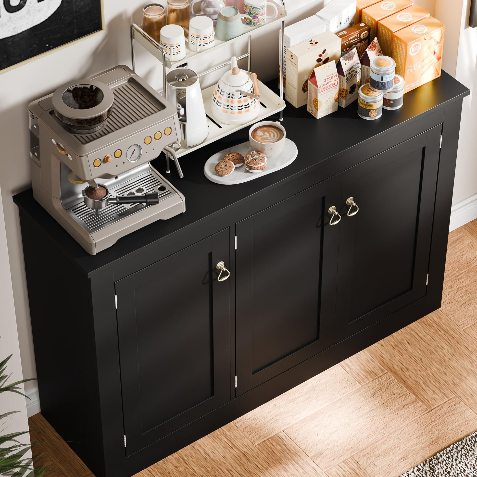 44.5" Black Buffet Cabinet with Storage, Wood Console Table Coffee Bar Sideboard for Kitchen, Dining, Living Room, or Entryway