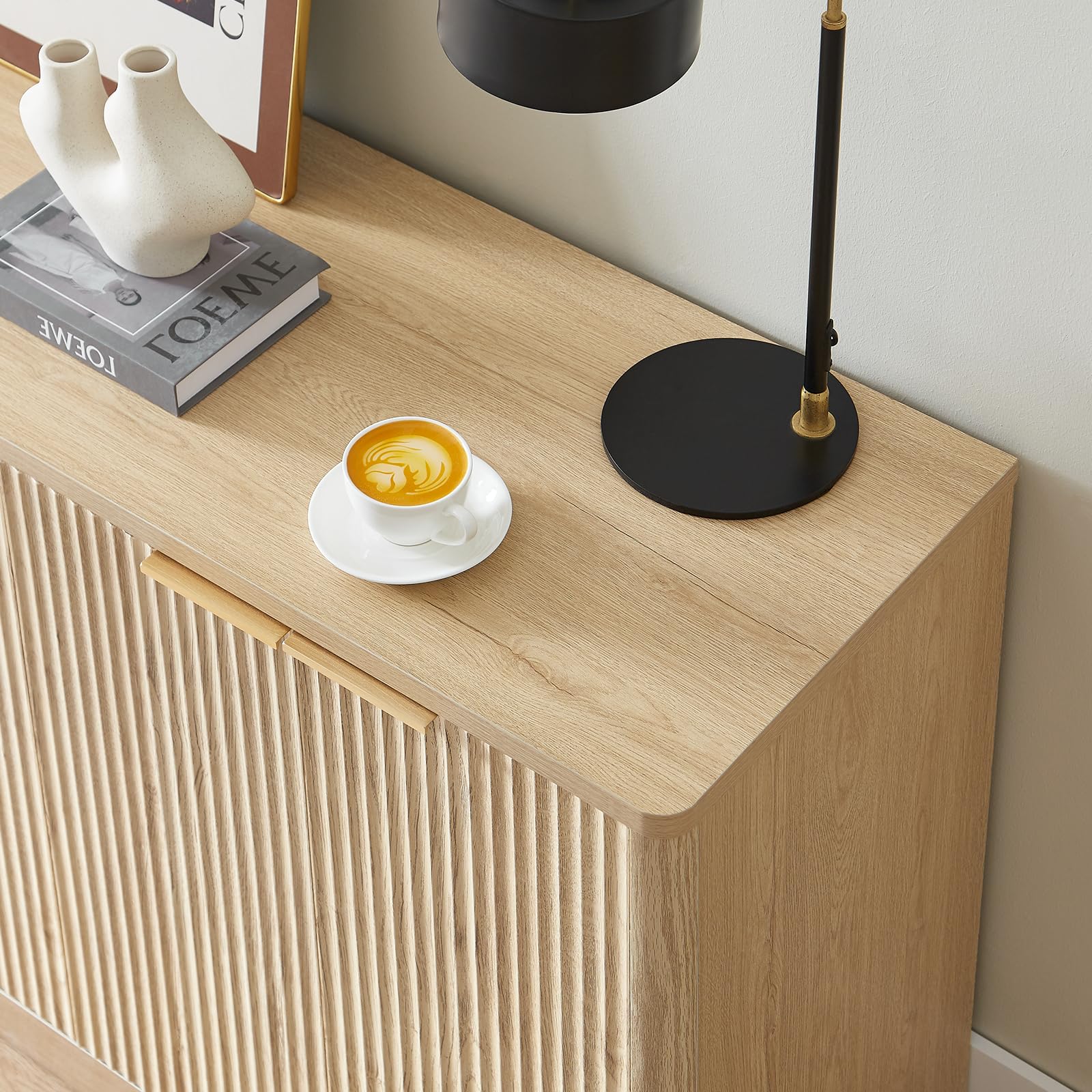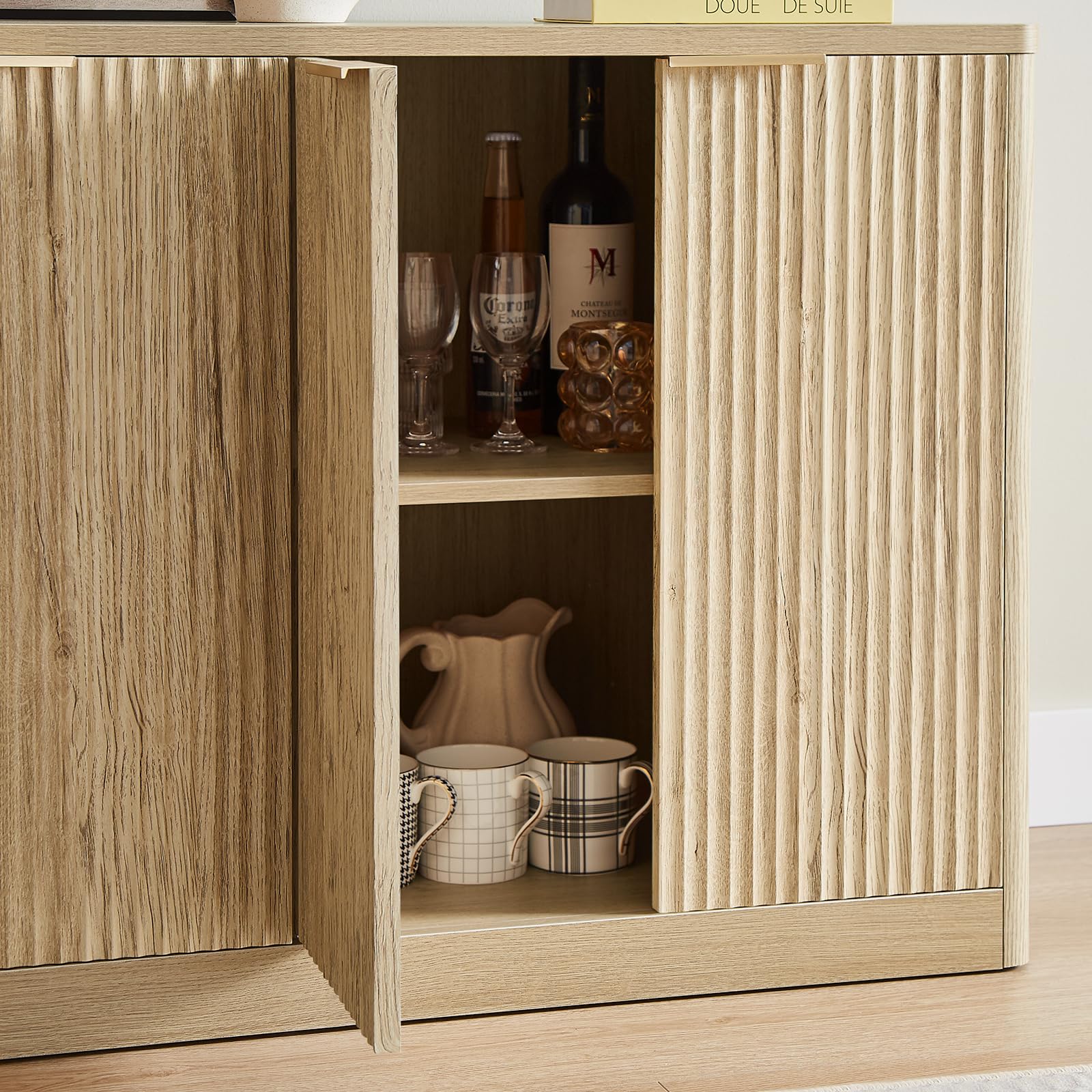 • 【Elegant Fluted Style】Showcasing a sleek fluted design with a warm walnut finish, this sideboard brings modern sophistication to dining rooms, kitchens, or living spaces