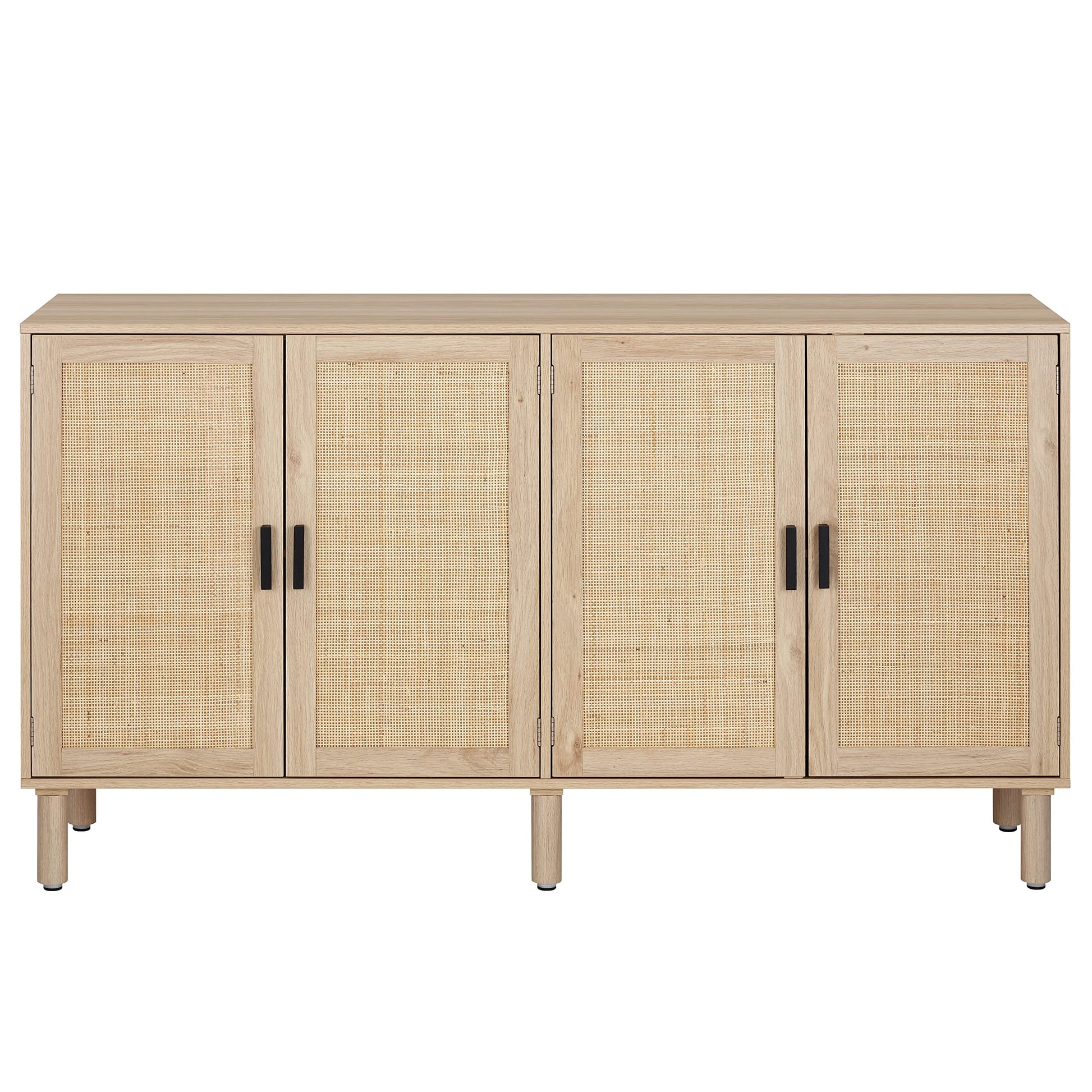 4-Door Sideboard Buffet Cabinet with Rattan Doors, Boho Kitchen Storage Console Table and Liquor Cabinet for Home Bar or Dining Room, 62.3" x 15.7" x 34.6", Natural
