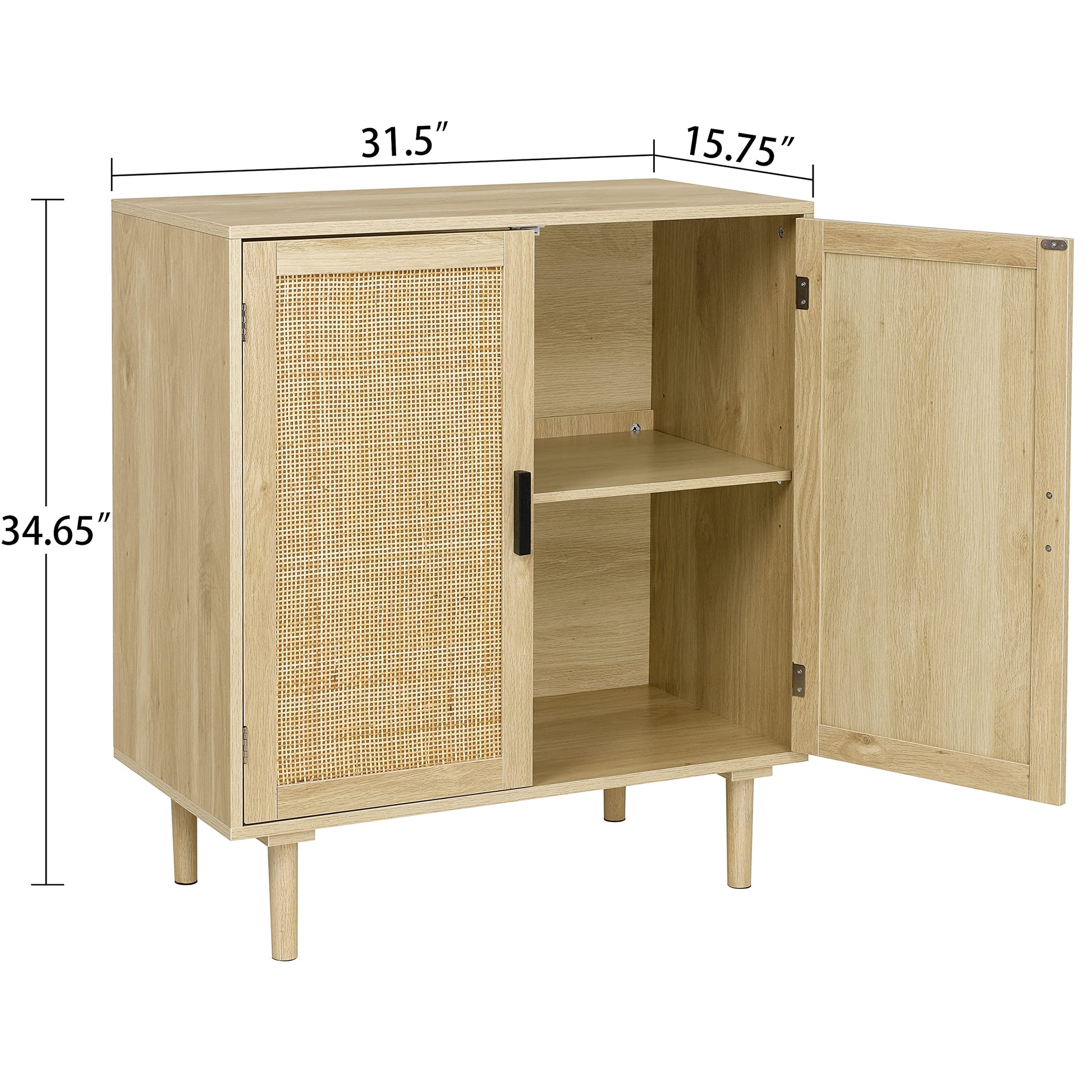 Sideboard Buffet Cabinet with Rattan Decorated Doors, Kitchen Storage Console Table and Liquor Coffee Buffet for Dining Room or Hallway, 31.5" x 15.8" x 34.6", Natural