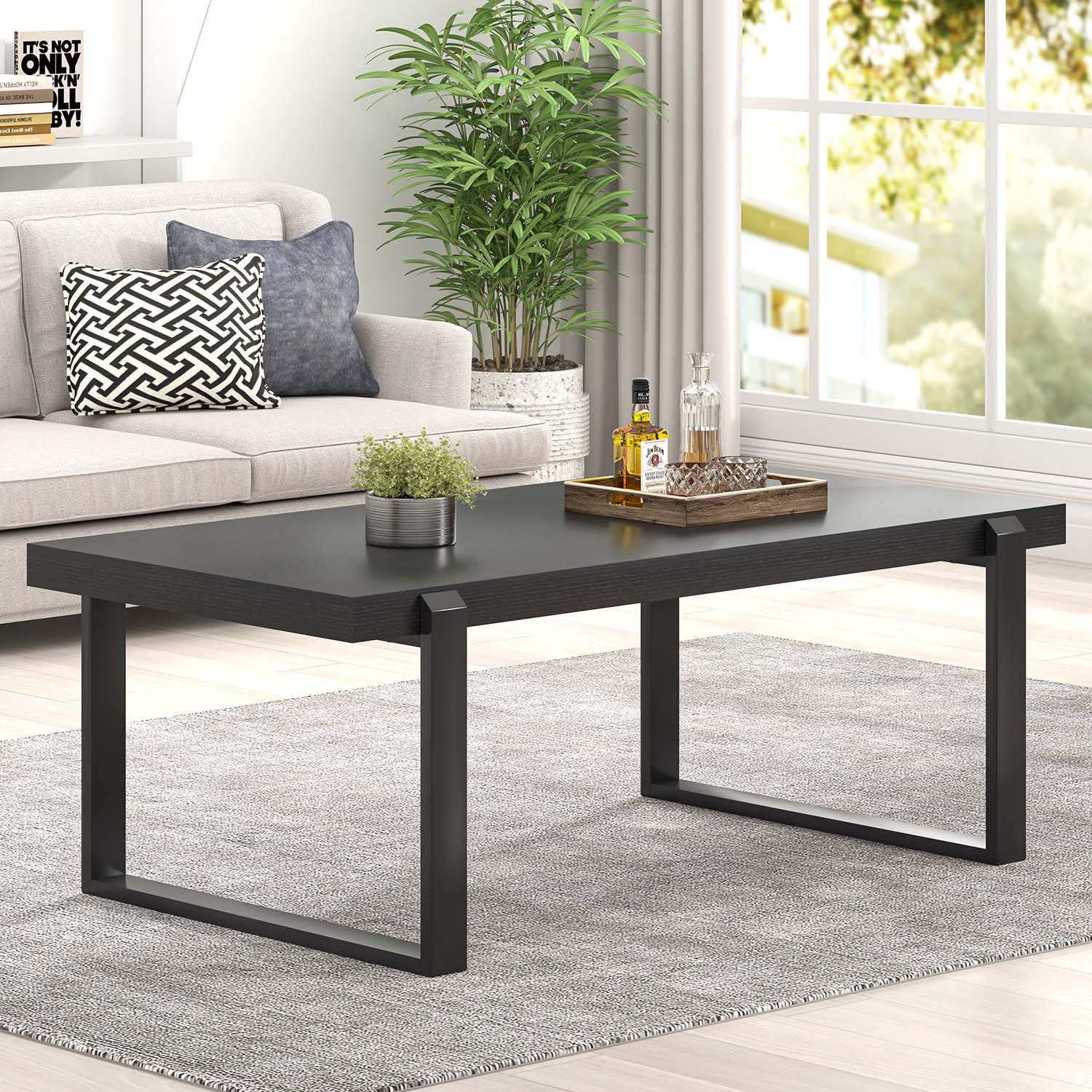 • Sturdy Build: Made with a durable MDF tabletop and sturdy metal legs, this black coffee table supports up to 300 lbs. The stable structure ensures reliable use, while its open design offers legroom and makes it a great addition to any living spaces
