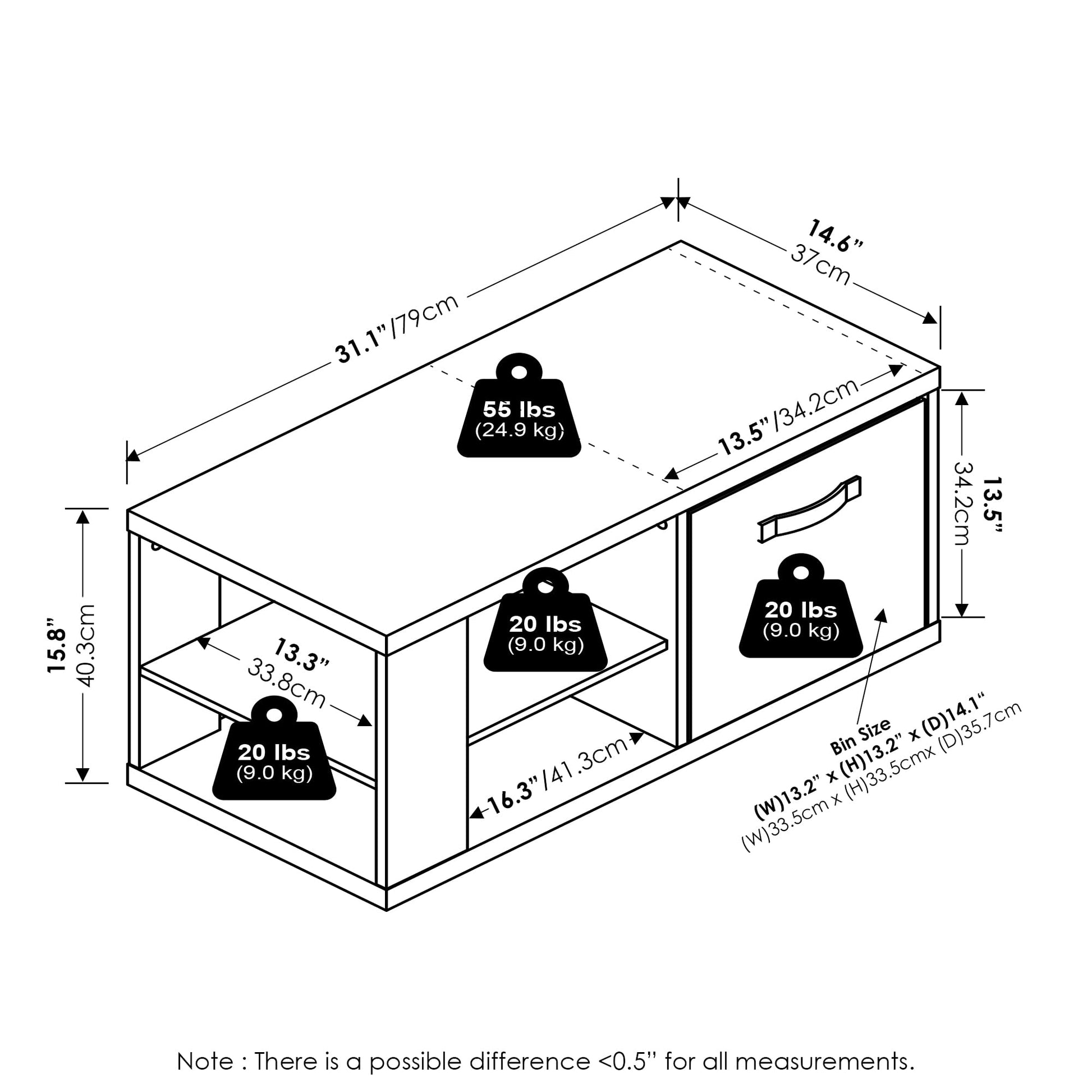 Details: Add a touch of rustic charm to your living space with the Furinno Viola Coffee Table, featuring a clean-lined silhouette. Designed with open shelves for easy access to books or décor, and a convenient fabric bin to tuck away clutter, this table blends functionality with style. Its compact footprint makes it an ideal choice for apartments, small living rooms, or multipurpose spaces. The Coffee Table is made of CARB-grade composite wood tested for durability and sturdiness. Assembly is easy with provided step-by-step instructions. Care instructions: wipe clean with a clean damped cloth. Avoid using harsh chemicals. Pictures are for illustration purposes. All decor items are not included in this offer. The product is entitled to a 1-year warranty against manufacturer defects. Fits Space, Fits Budget.
