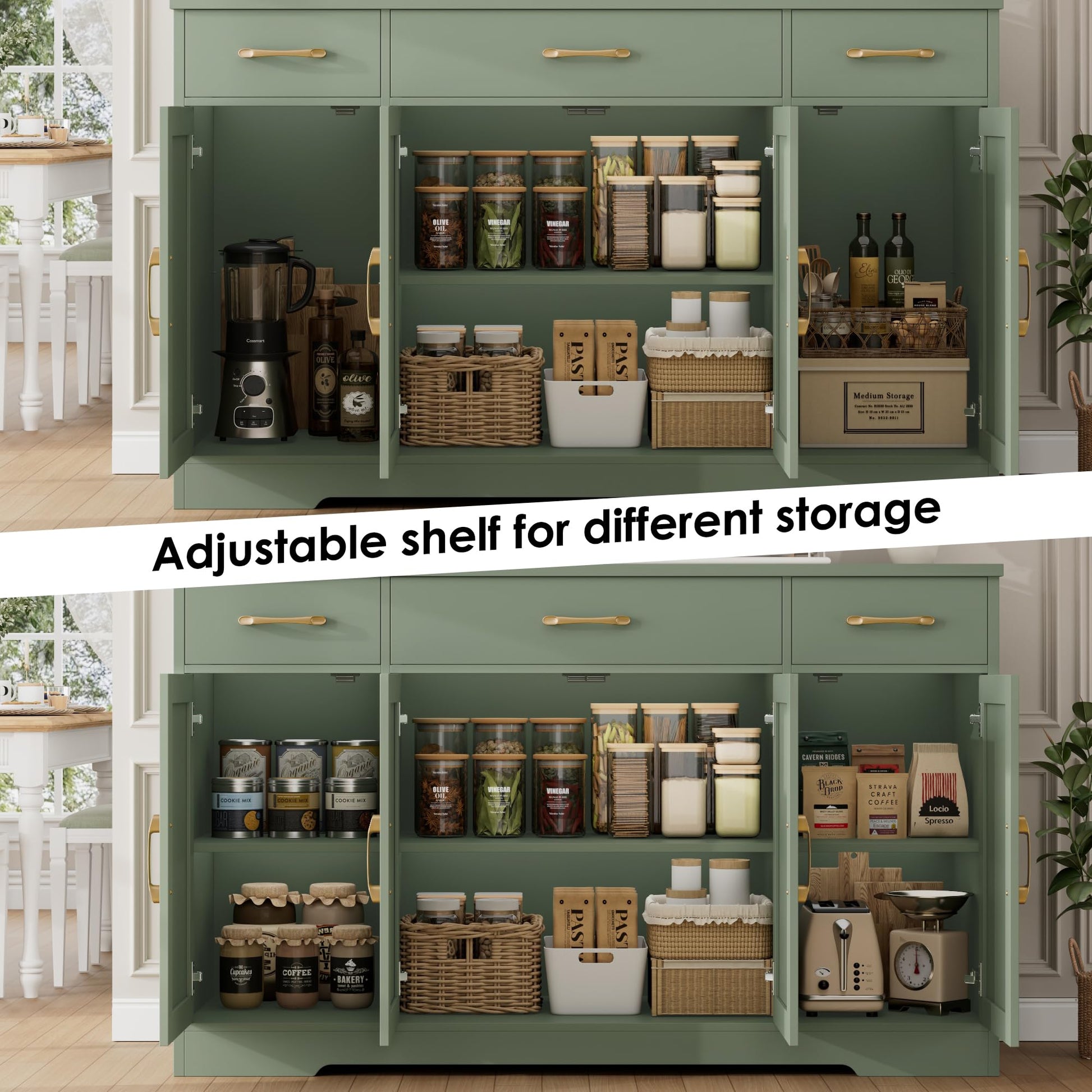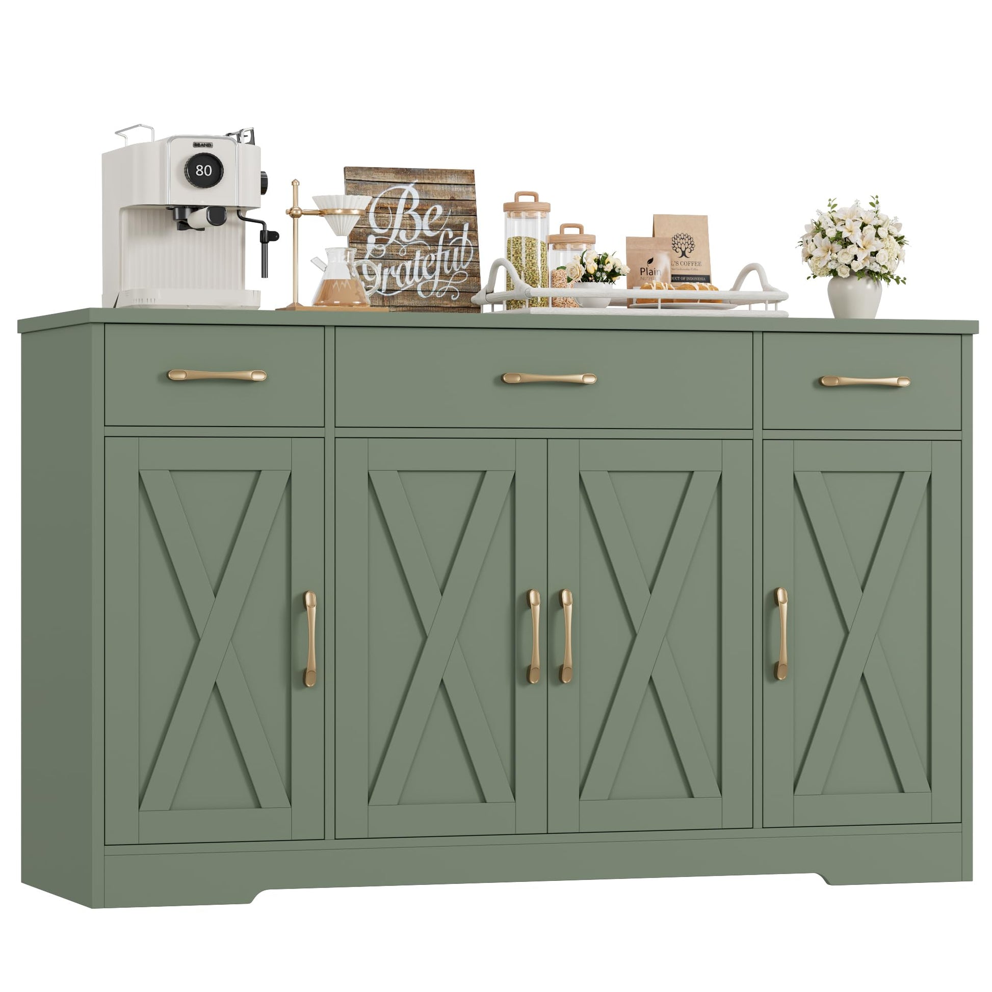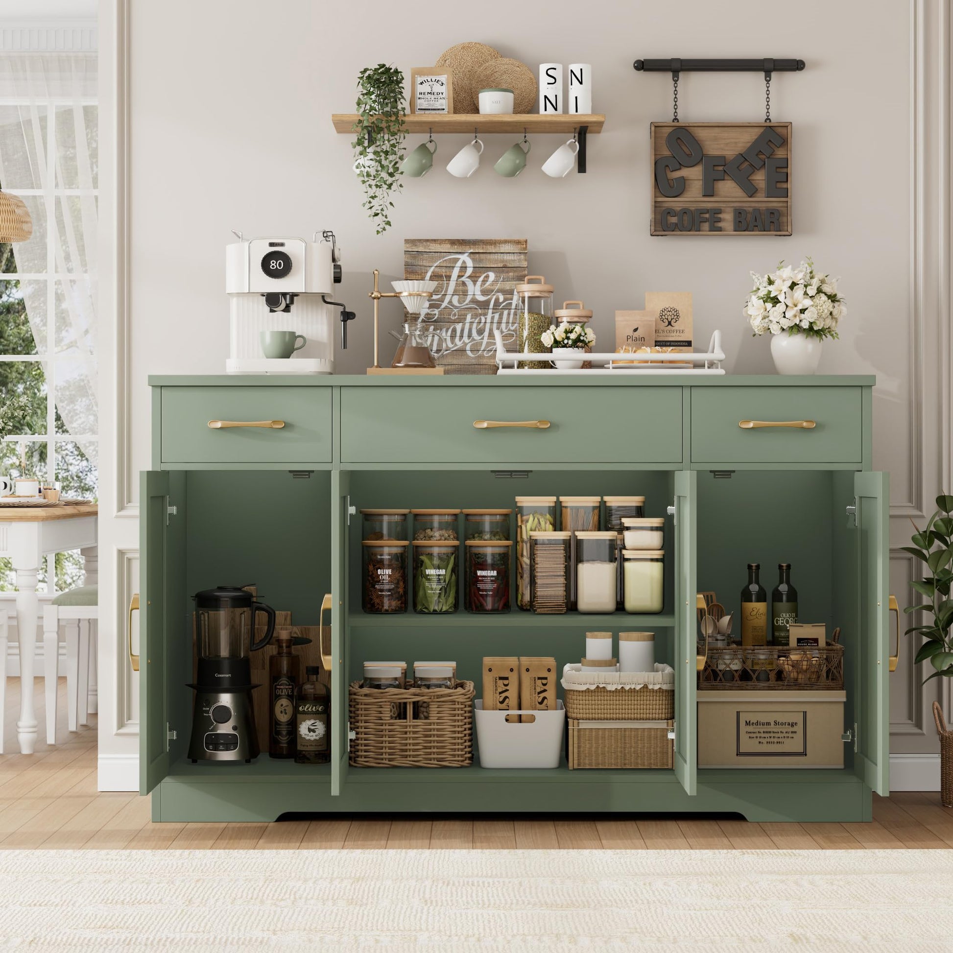 55" Large Buffet Sideboard Cabinet with Drawers, Shelves, and Doors, Modern Farmhouse Coffee Bar Station for Kitchen or Dining Room, Green