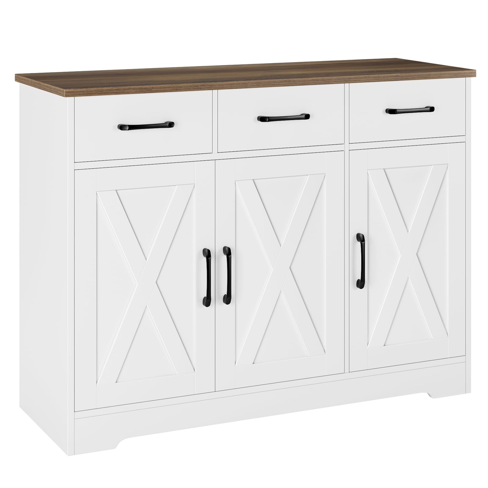 **HOSTACK Modern Farmhouse Sideboard Buffet Cabinet with Barn Doors, Drawers, and Shelves, Wood Coffee Bar Storage Cabinet for Kitchen, Dining Room, or Living Room, White**