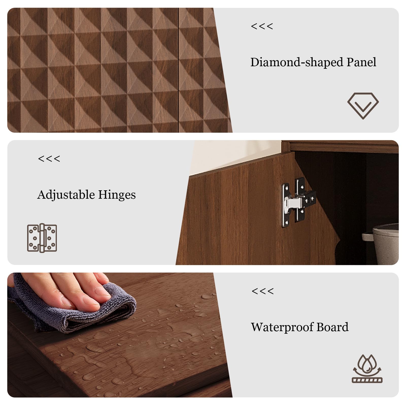 • CRAFTMANSHIP DESIGN: Boasting a smooth surface and vibrant color, this sideboard buffet cabinet with storage features panels crafted with high-quality plastic absorption technology, offering versatility to suit a wide range of design styles. Each panel is adorned with an intricately designed diamond pattern, adding visual depth and a touch of contemporary elegance to any interior. The finely cut surfaces of the pattern catch the light beautifully, filling the space with dynamic reflections and a sense of luxurious brilliance.