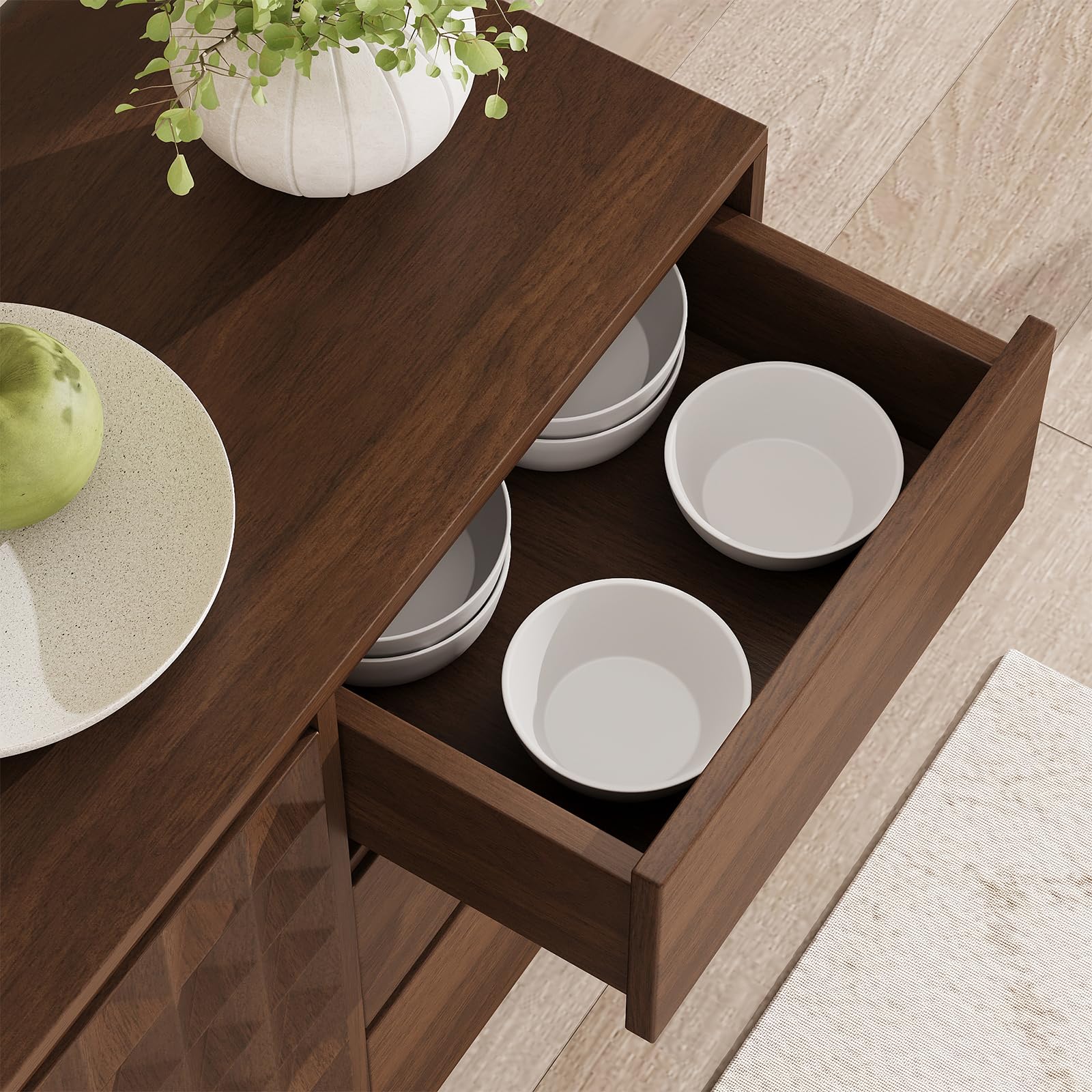 • LARGER STORAGE SPACE: This versatile buffet cabinet offers both style and function to keep any room tidy. Two doors provide ample concealed storage for your essentials, while a pair of adjustable interior shelves allow space for items of various sizes. Additionally, three drawers help keep smaller belongings neatly organized and within easy reach. Perfect for the dining room, living area, or hallway, this sideboard is an indispensable organizer for any home.