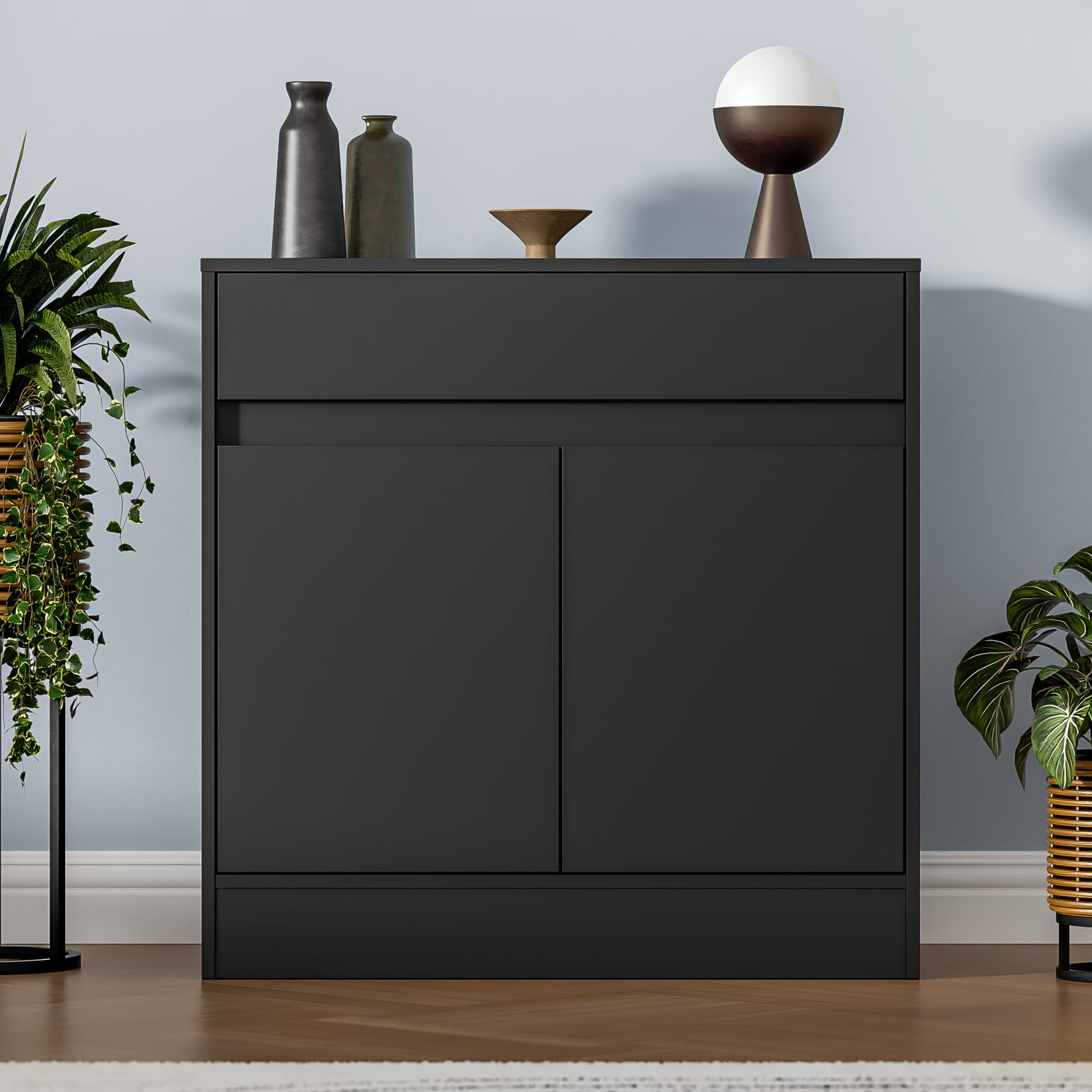 Buffet Cabinet with 2 Doors, Drawer, and Adjustable Shelf, Modern Kitchen Sideboard Coffee Bar for Living Room or Kitchen, Black