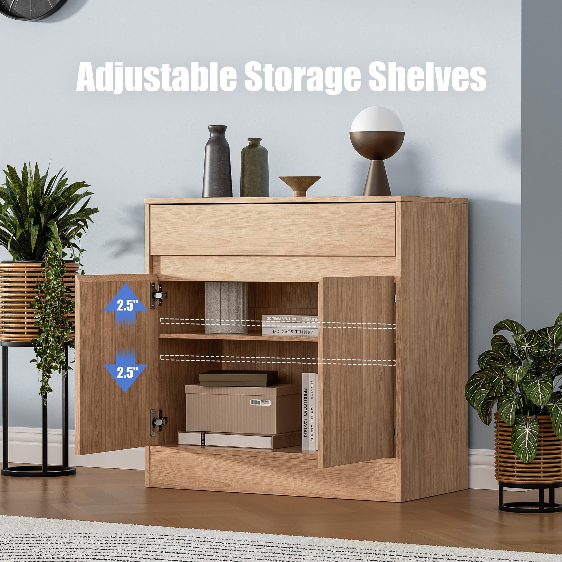 Buffet Cabinet with 2 Doors, Drawer, and Adjustable Shelf, Modern Kitchen Sideboard Coffee Bar for Living Room or Kitchen, Oak
