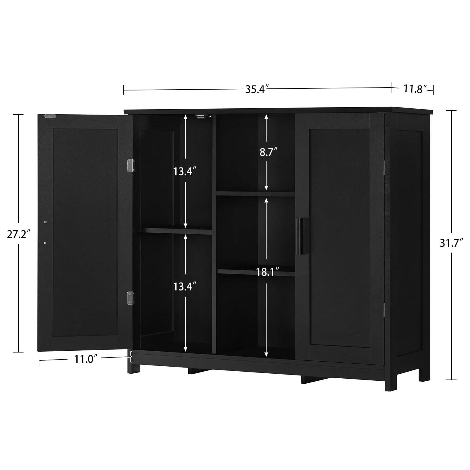 Storage Cabinet with 2 Doors and 4 Shelves, Bathroom Cupboard or Credenza for Living Room, Entryway, or Home Office, Black