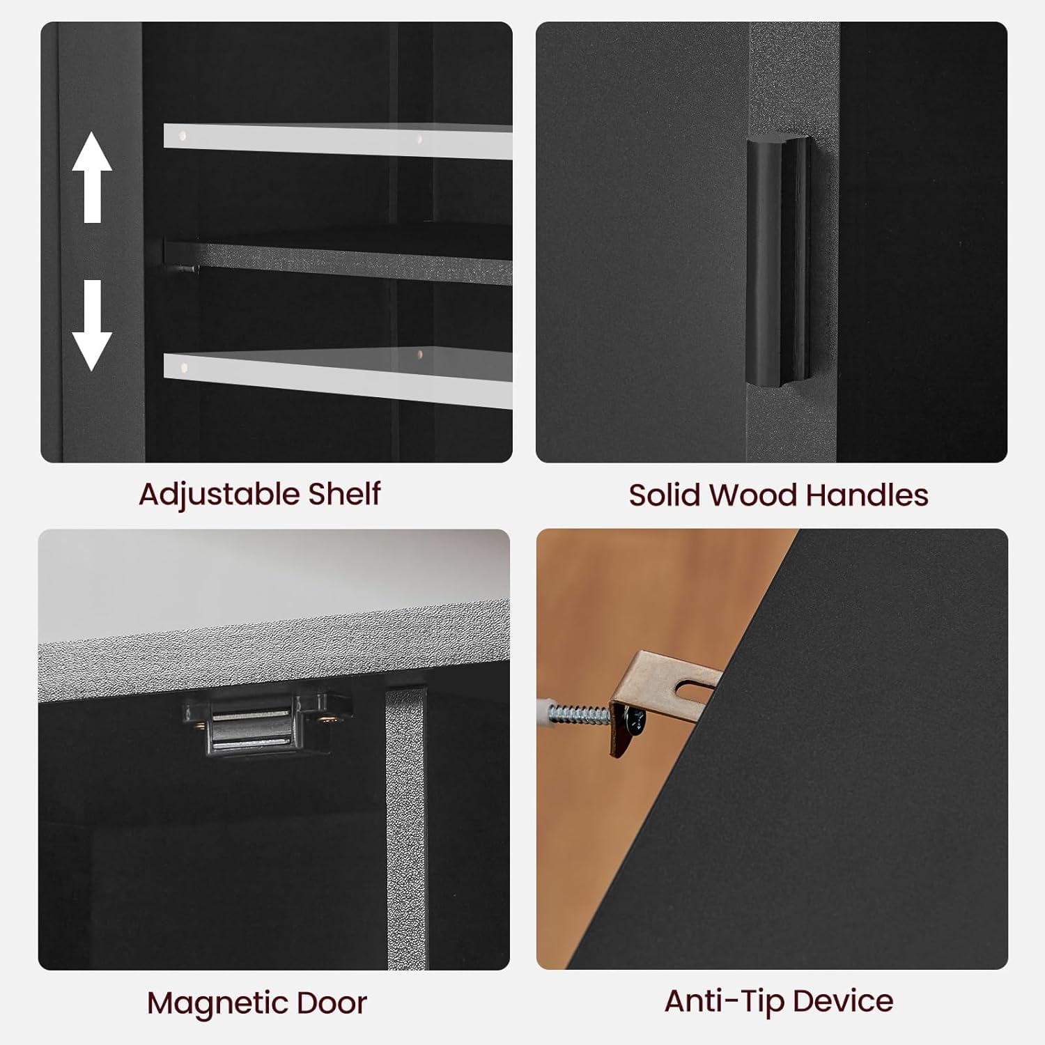 - ⭐【Good Quality & Safe to Use】Made of engineered wood, this storage cabinet is super stable, no harm and odorless, bring a safe and healthy living environment for you. Well made in eco-friendly waterproof paint, suitable for wet environment. Meanwhile, an anti-tip kit helps secure cabinet to the wall, which can protect the safety of your family.