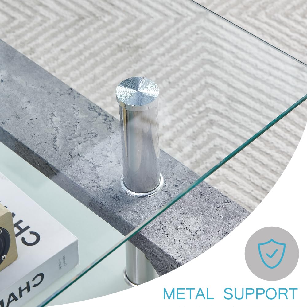 • 1. Stylish and modern: Our glass coffee table features an industrial style with its sleek gray design, creating a contemporary addition to any home decor.