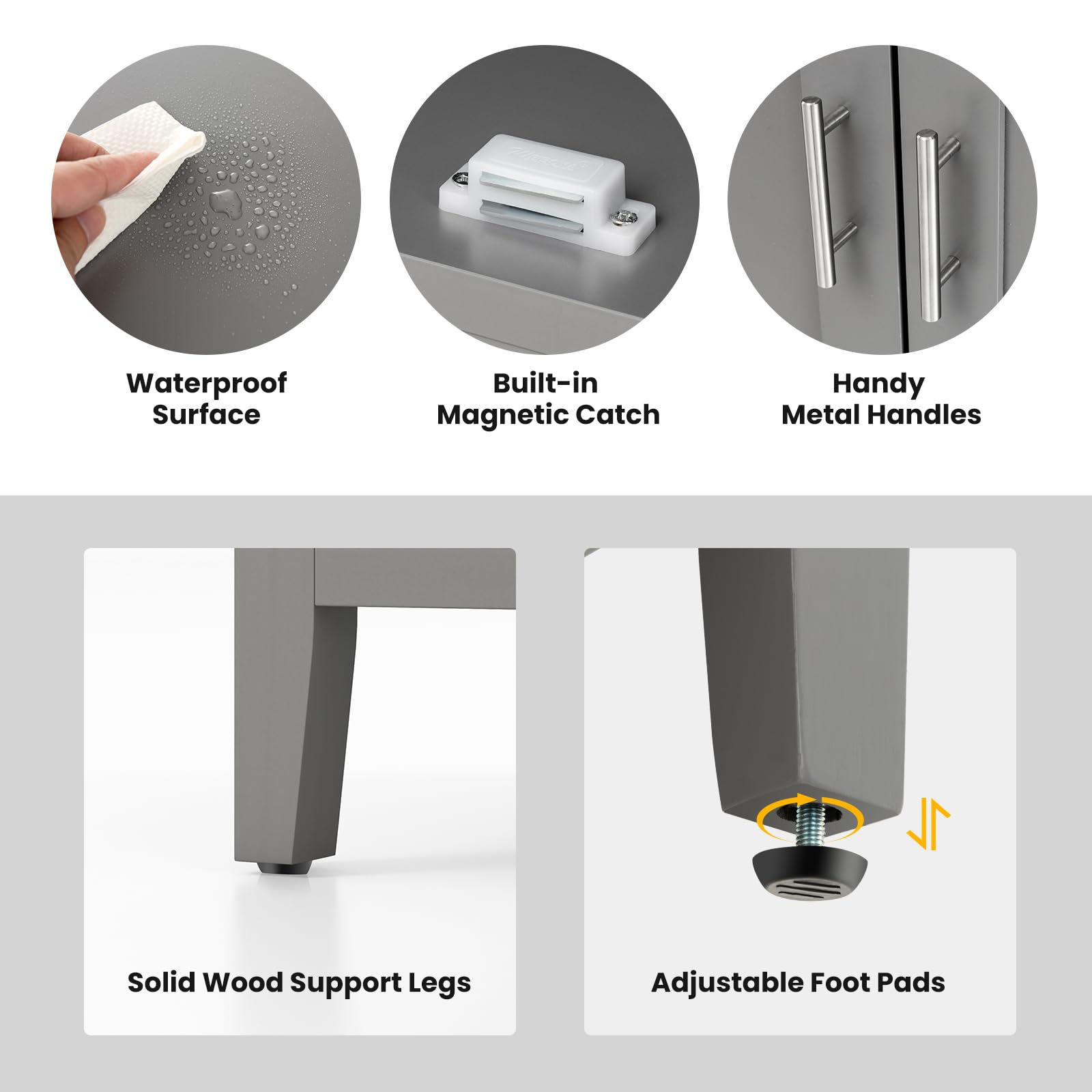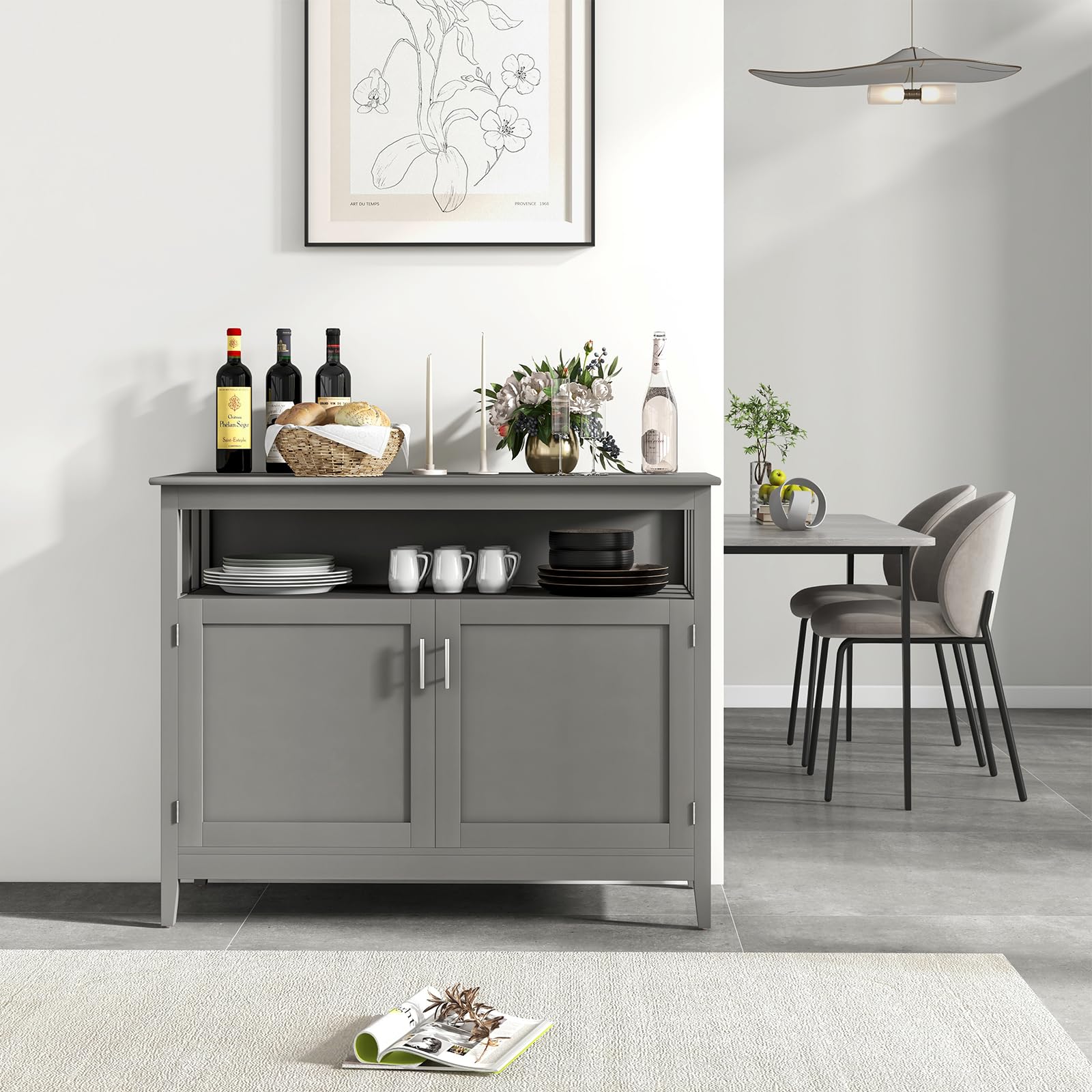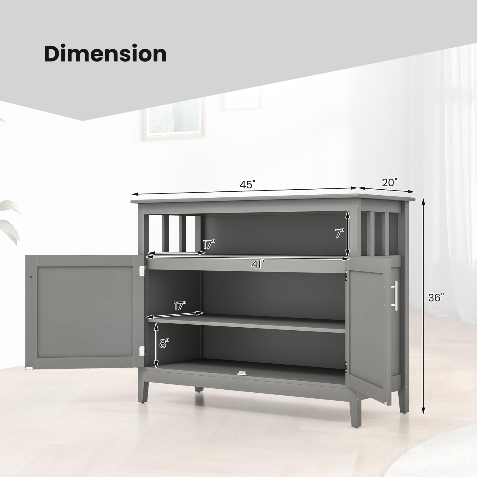 Freestanding Buffet Cabinet with Adjustable Shelf, Kitchen Storage Sideboard Console Table, 45" x 20" x 36", Grey