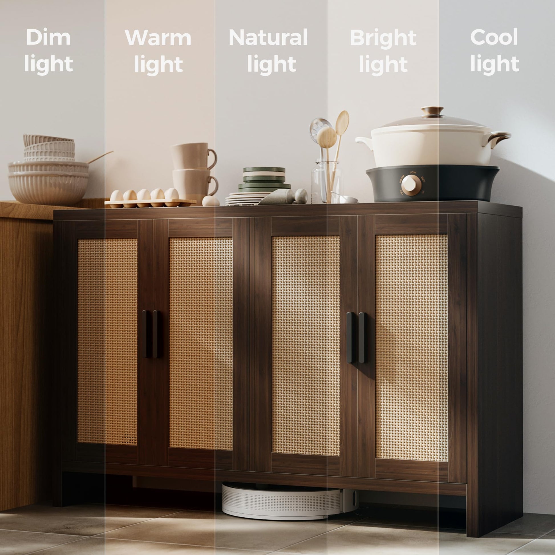 **Rattan Buffet Cabinet with Storage, Sideboard with Doors and Adjustable Shelves, Farmhouse Coffee Bar Station, Modern