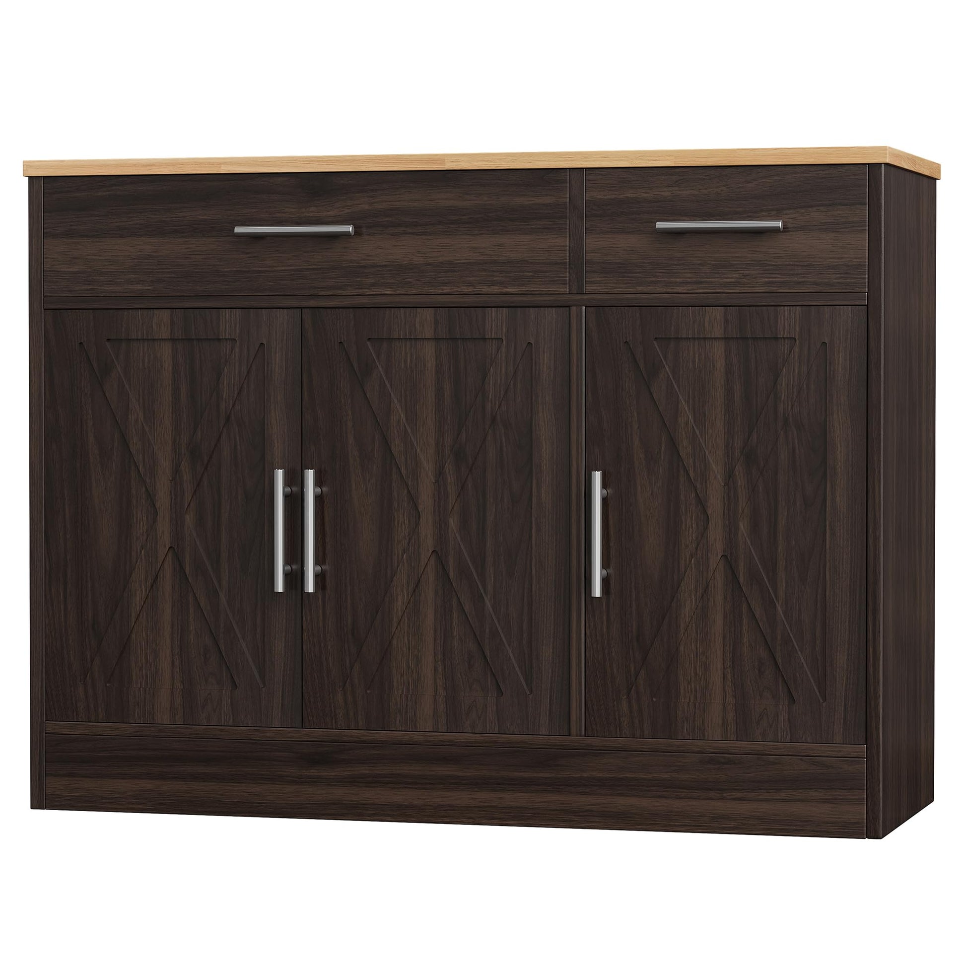 Modern Farmhouse Sideboard Buffet Cabinet with Barn Doors, 2 Drawers and 3 Doors, Adjustable Shelf for Kitchen or Living Room, Brown