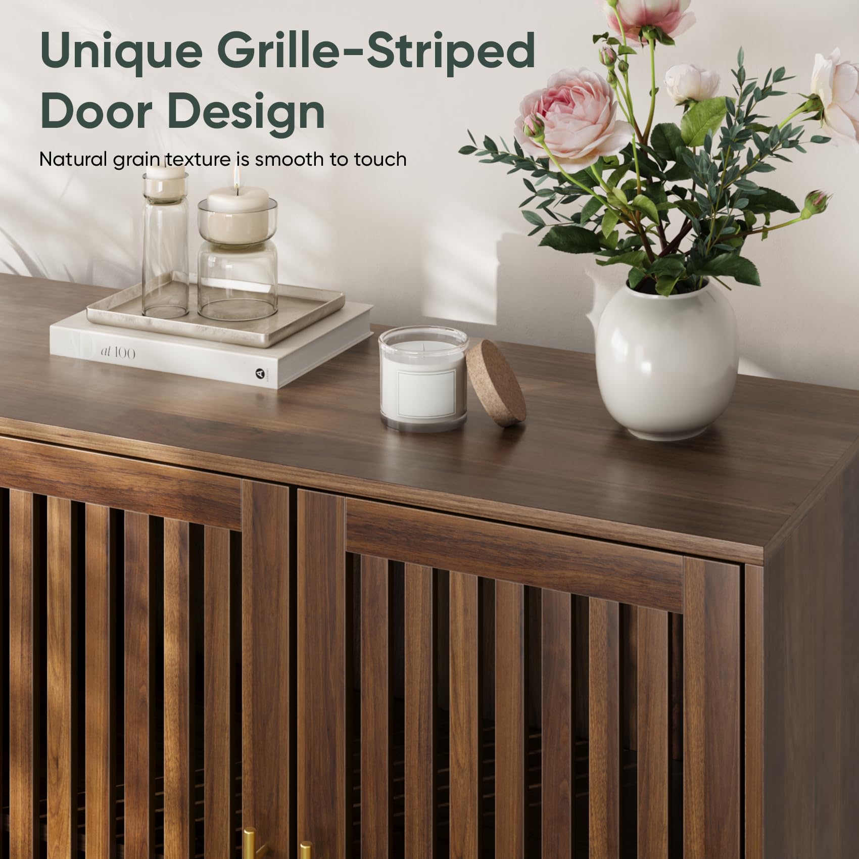 • 【Modern Farmhouse Storage Cabinet】This walnut storage cabinet features unique slatted doors, beautifully combining rustic charm with modern elegance. Its eye-catching design will add a striking touch to almost any room